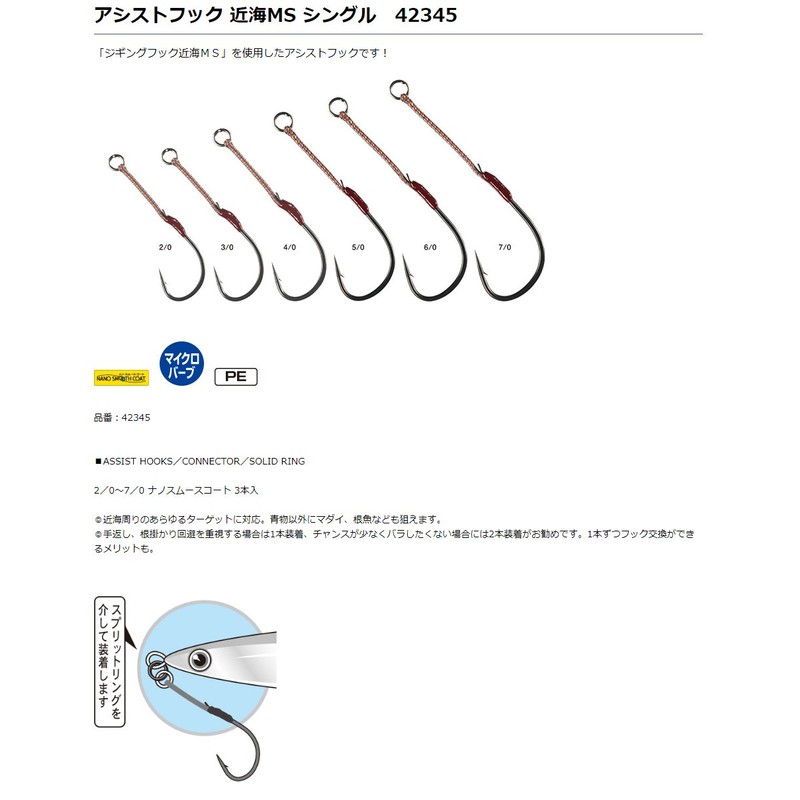 - Gamakatsu Assist Hook Kinkai MS Single 42345 (Asisted Hook) Size: 2/0 - 4/0 (Nano Smooth Coat) Quantity: 3 Pieces