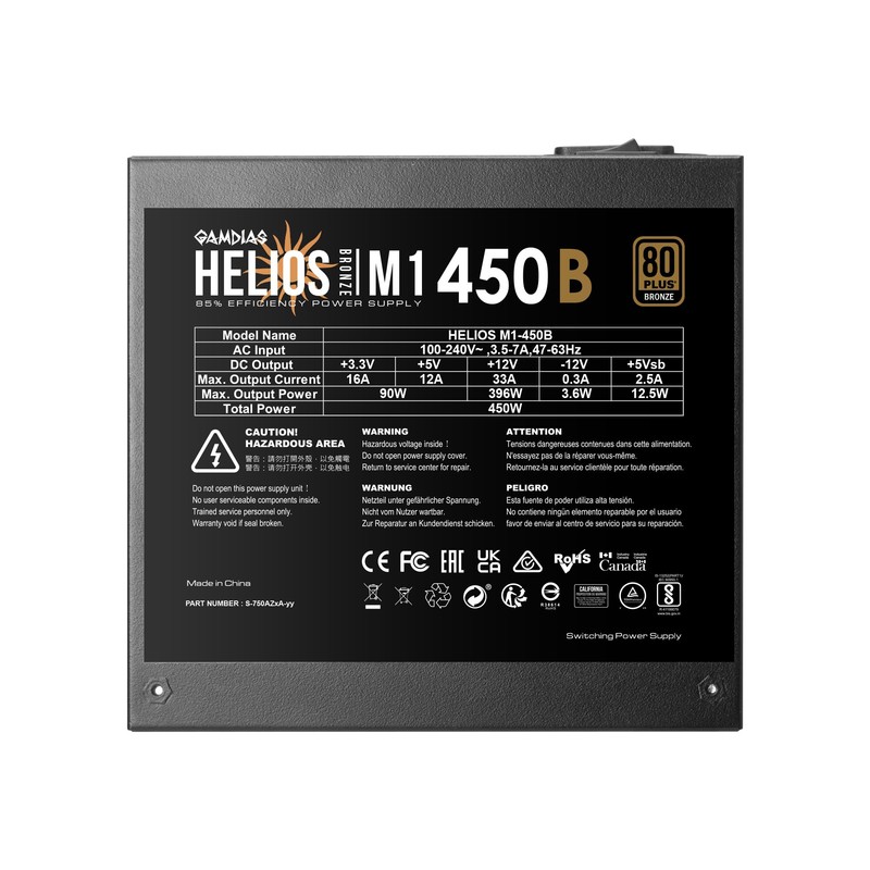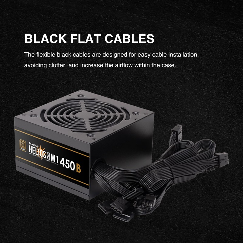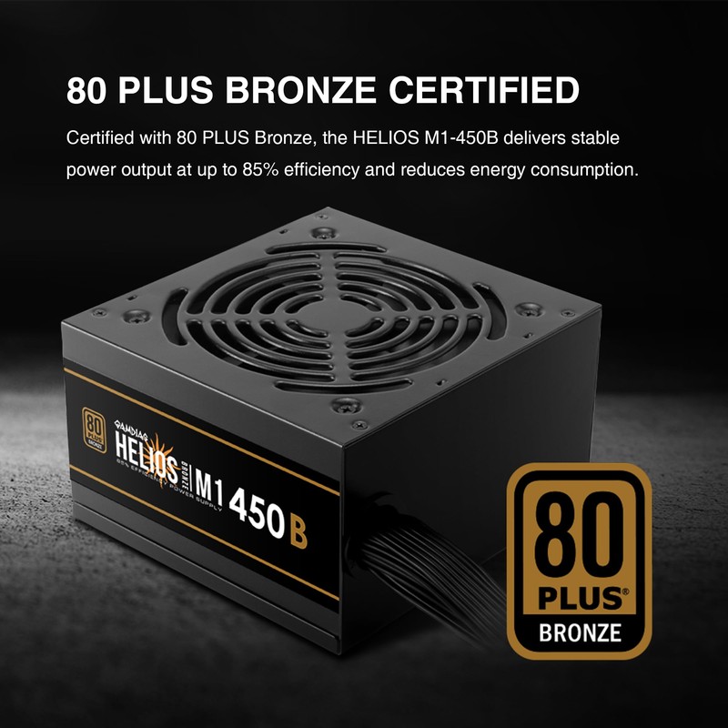 GAMDIAS 450W Gaming PC PSU, 80 Plus ATX Bronze 12V Power Supply for PC Computers with Active PFC, Non-Modular PSU, Helios M1-450B