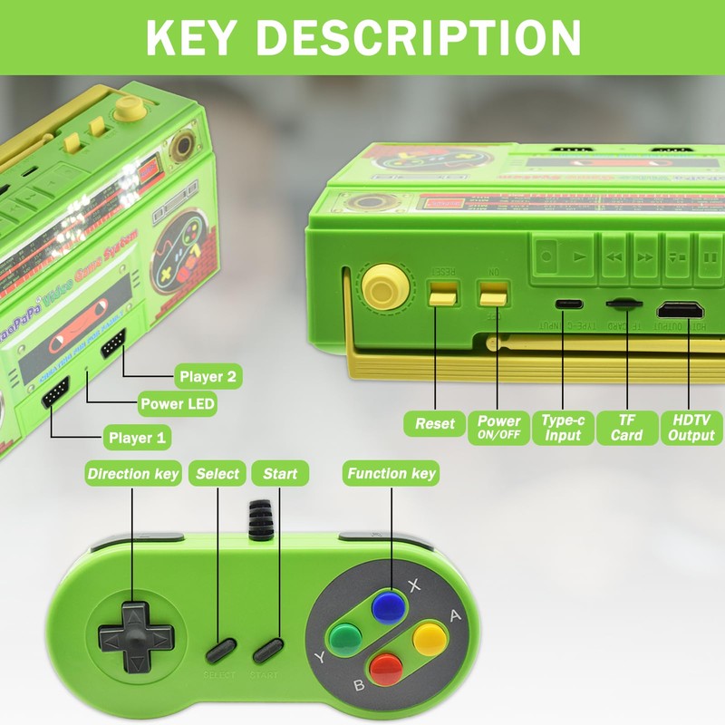 - 【Vintage Recorder Shape】 The shape of our game console is inspired by the classic radio. This is very classic and very unique, so this game console is still a very beautiful decoration.