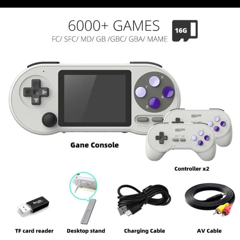 Game console With 6000 built-in games, the DATA FROG SF2000 Portable Handheld Game Console is a 3 inch IPS retro game console perfect for kids - Colour: White, Extra controllers: 0