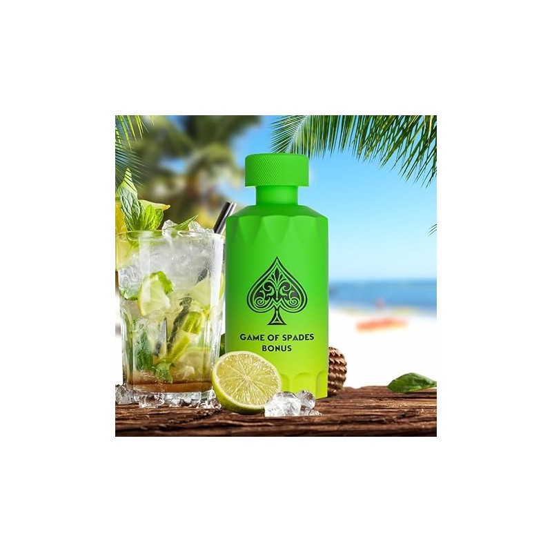 Introducing Bonus, a captivating unisex fragrance that masterfully blends aromatic, citrus, and sweet notes for an unforgettable sensory experience. This 3.4 fl oz parfum opens with vibrant top notes of orange, lemon, citron, mint, and blackcurrant, creating an invigorating first impression. The heart reveals an elegant combination of May rose, apricot, basil, and carrot seeds, while the base notes of dates, ambrette, and fig leave a unique, lasting trail. Perfect for both day and night wear, this sophisticated scent evokes memories of perfect evenings by the sea - where fresh breeze meets warm sunshine. The striking green bottle features an ornate spade design, making it a stunning addition to any fragrance collection. Ideal for office wear, casual outings, or special occasions, this parfum offers excellent longevity and makes a statement without overwhelming. The double-sealed liquid ensures freshness and safe handling.