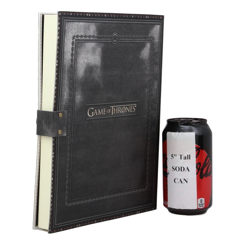 • The Book Journal measures 7.75" by 10.25" by 1.75"Thick. The blank pages measure 7.25" by 10" (inches). The Journal's Black Game Of Thrones Logo Signature Gift Box/Case measures 11.25" by 8.25" and 2" Thick.