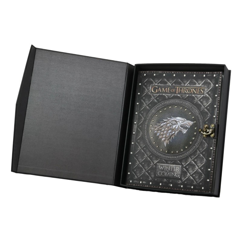 • This is a Beautiful Embossed Journal with the iconic House Of Stark Direwolf and the Motto Winter Is Coming design along with the House Sigils of the show. It is an Game of Thrones Official Merchandise
