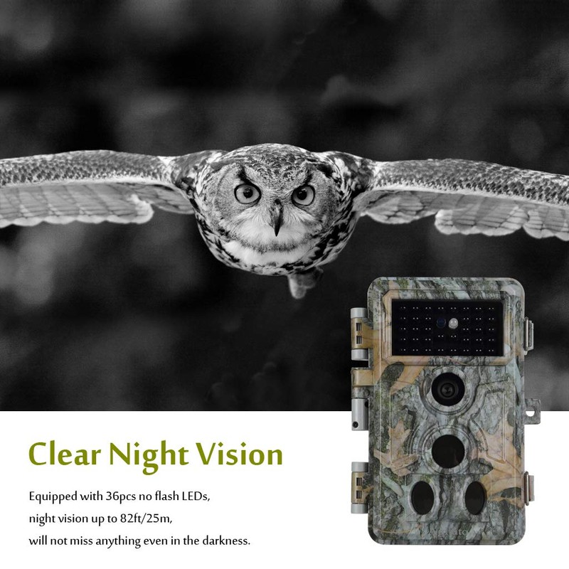 - ◀ Excellent Sensitivity and Night Vision with 3 PIR ▶ The scouting camera will detect movements of wild animals as soon as they enter the detecting range. With 3 passive infrared sensors, the high-sensitive camera detect and record every breathtaking motion with lower power consumption. The 36pcs upgraded infrared LEDs without bright flash can let you catch any moment even at dark night.