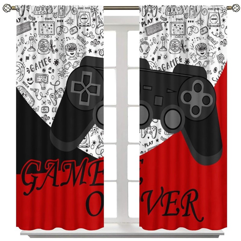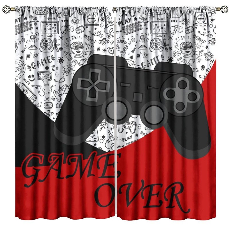 Gamer Curtains for Kids Boy Bedroom,Video Game Player Joystick Print Pattern Window Drapes for Man Teen Youth Nursery Baby Bedroom Curtains,Red 42" W X 45" L