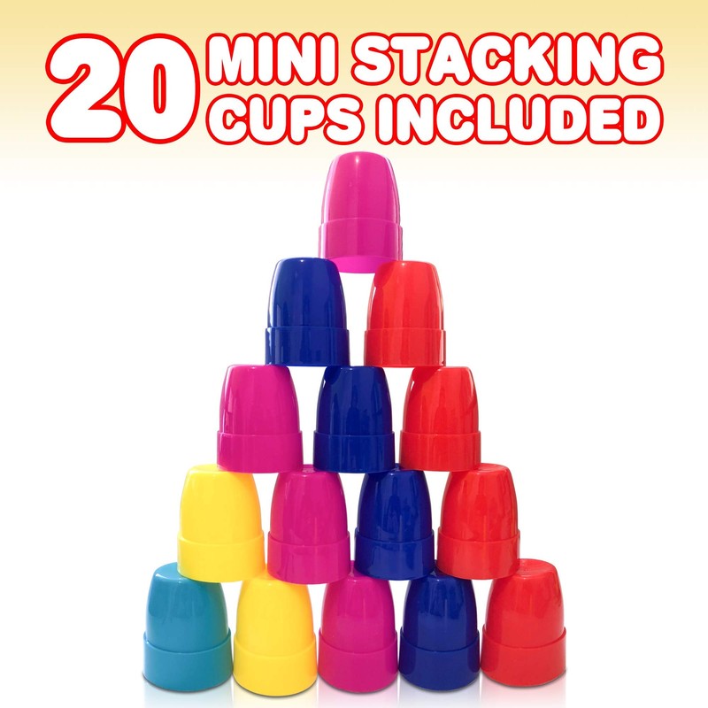 - Comes with 20 small sturdy stacking cups in 5 colors