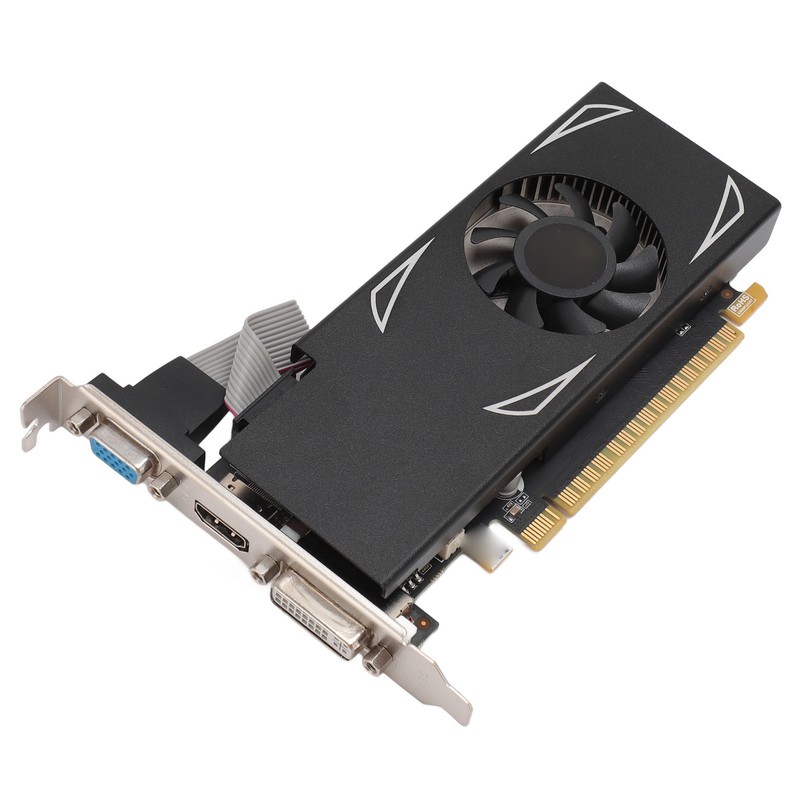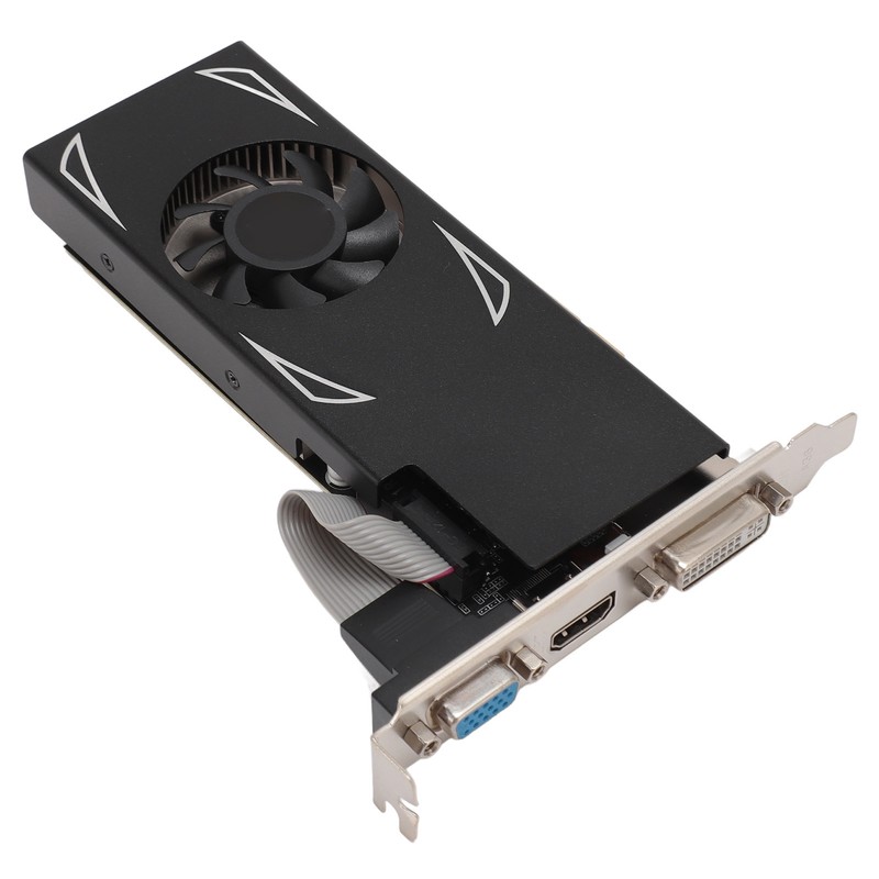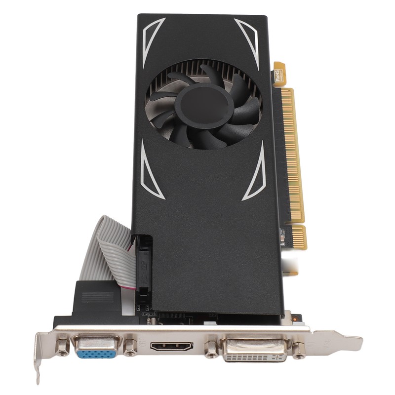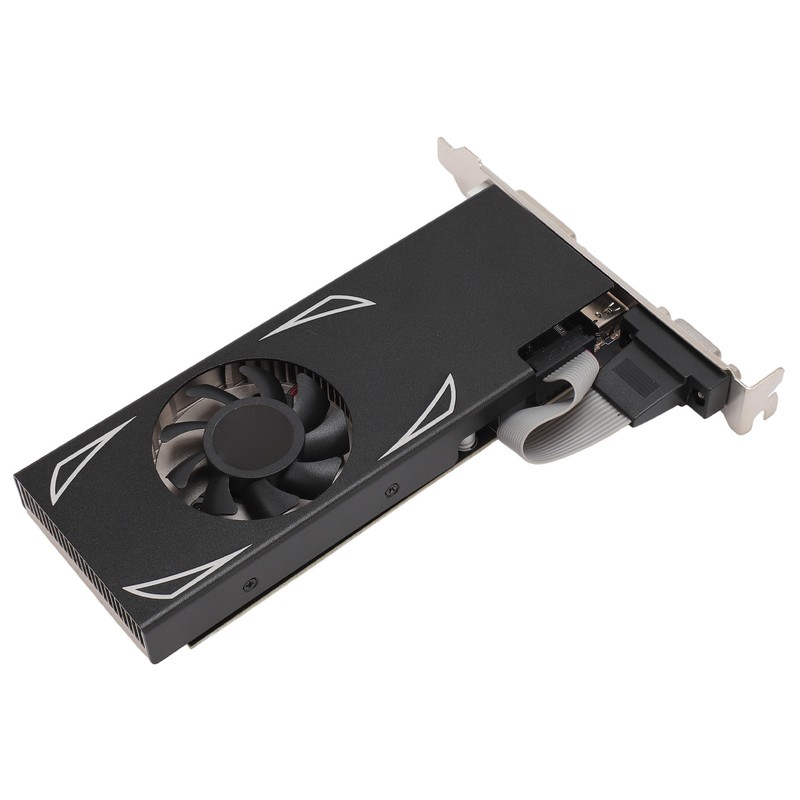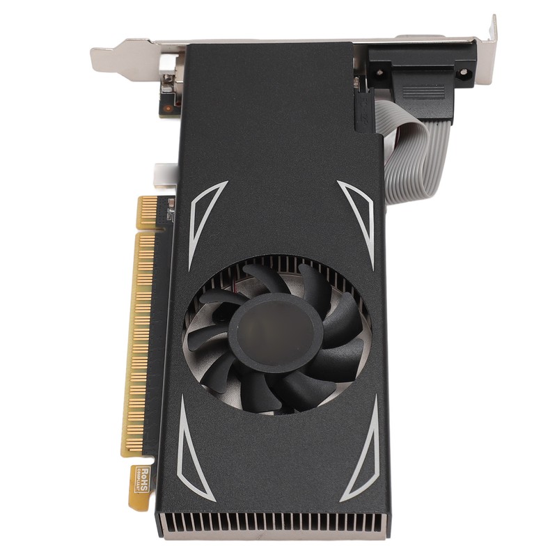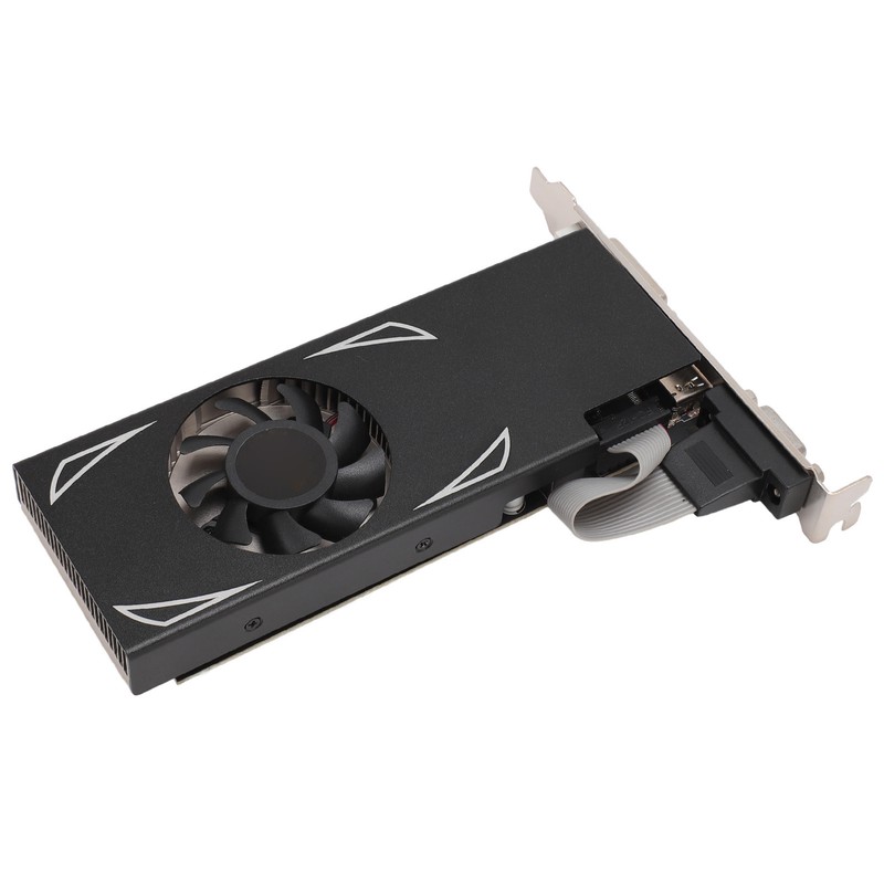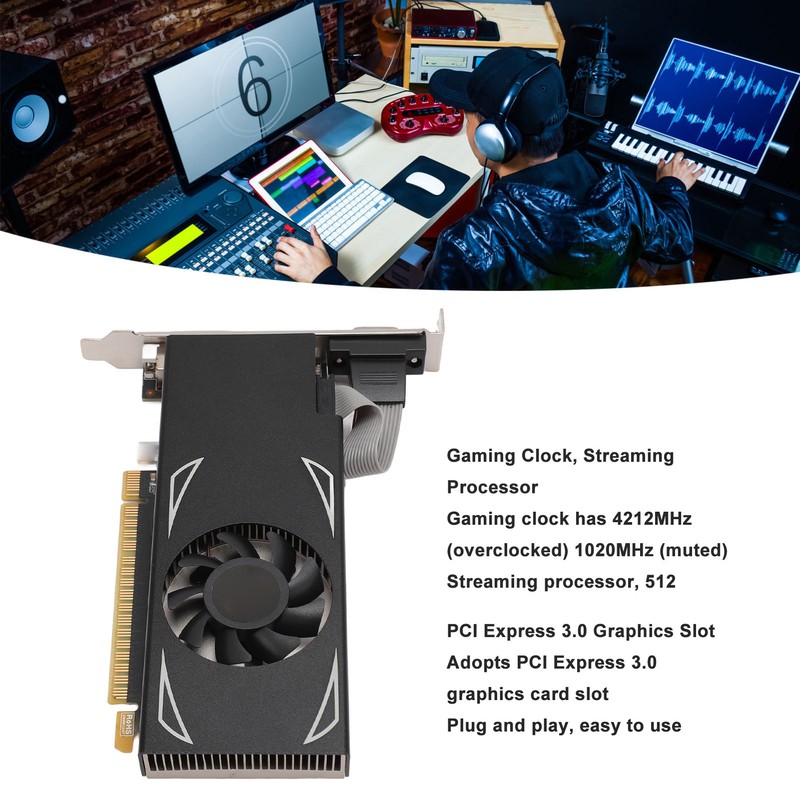 1、EASY INSTALLATION DESIGN: Slim and lightweight design saves installation space, builds compact PC systems and is even compatible with ITX chassis. There are 3 display ports for monitors, including DVI, VGA, HD Multimedia Interface 2.0. 2、GAMING CLOCK, STREAM PROCESSOR: GDRR5 graphics card has a gaming clock of 4212MHz (overclocked) 1020MHz (muted); Stream Processor, 512. 3、PCI EXPRESS 3.0 GRAPHICS CARD SLOT: 4GB graphics card with PCI Express 3.0 graphics card slot, plug and play, easy to use, high performance. 4、COOLING FAN: PCI Express 3.0 X16 graphics card features a single cooling fan that provides more airflow for a cool and quiet gaming experience. 5、PREMIUM MATERIAL: The PCI Express graphics card utilizes premium electrical components and PCB boards to ensure its safety and stability for long lasting durability.