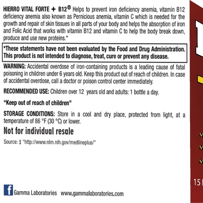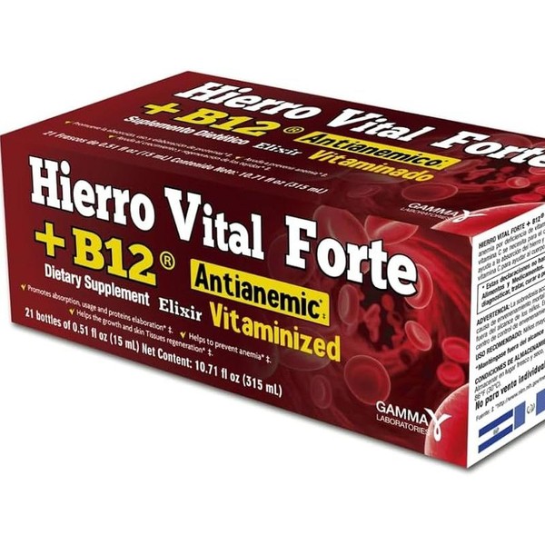 Gamma Hierro Vital Forte + B12 Vitamin Supplement, 21 Drinkable Bottles (0.51oz Each) – Natural Iron for Energy, Fitness & Daily Healthcare Support