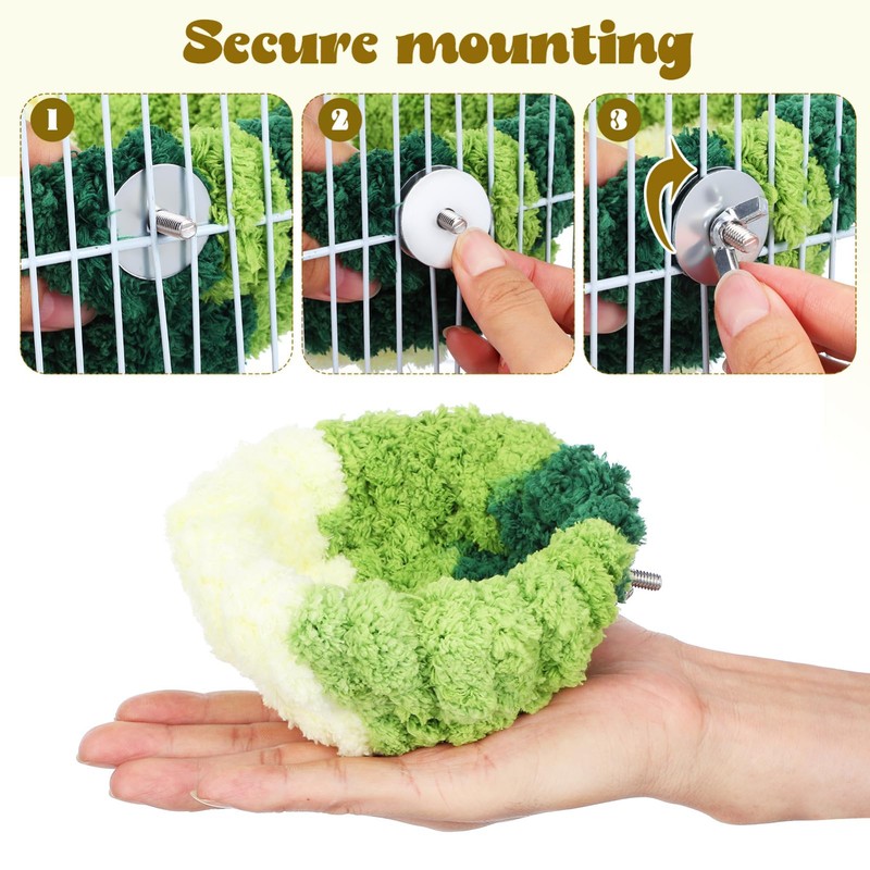 - Parrotlet Snuggle Hut: As a nest, green design that simulating natural nesting shape make it easier to attract birds to build their nests, we can fill the bird nest with hay and or other things, let our pet return to nature and enjoy a new life.