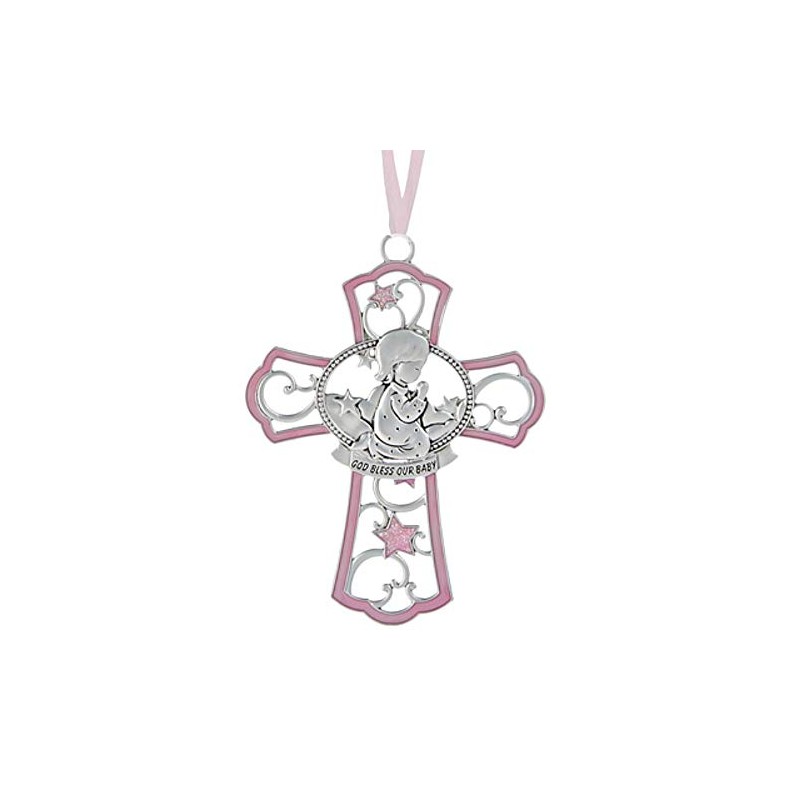 Ganz Girl Crib Cross, Pink, "God Bless our Baby"