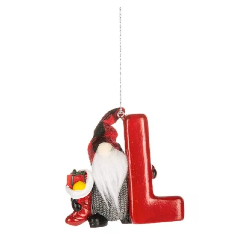Ganz Resin GNOME Monogram Initial Christmas Ornament w/Stocking "L" 3" x 2 3/4"