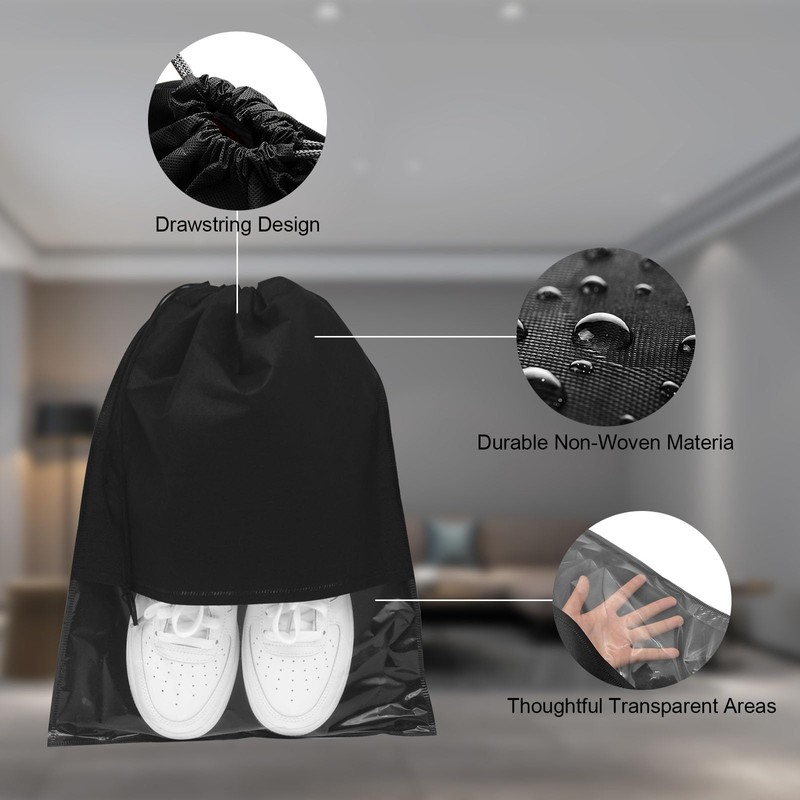 GAOHAN 10 Pcs Travel Shoe Bag,Shoe Bags,Shoe Bags for Travel,Drawstring Non-Woven Shoes Storage Bags with Transparent Window for Daily and Travel Use(Black)