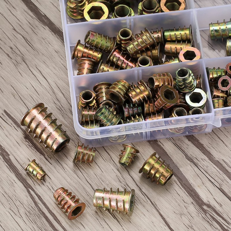 Gaomoeny Pack of 130 Threaded Insert, Wood Screw-In Nut Set, M4 M5 M6 M8 M10 Screw-In Sleeves, Threaded Sleeves, Female Thread Inserts Thread Sleeve for Wood Furniture