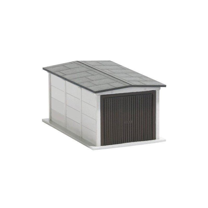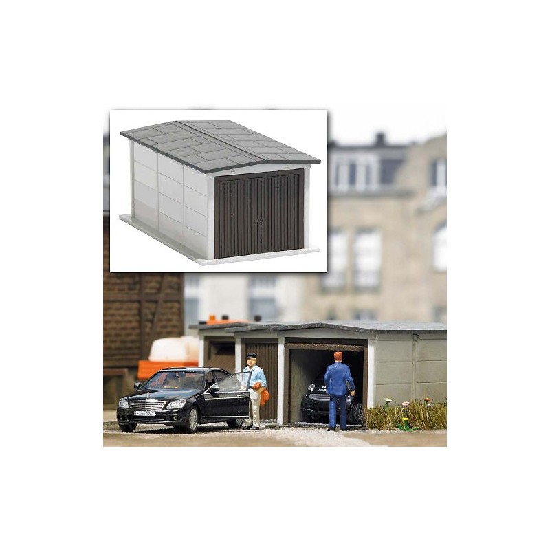 Model of an East German standard garage. Similar "ready garages" can also be found in the old federal states, so that the garage can be used universally. Replica of concrete slab walls and plastic base. Kit