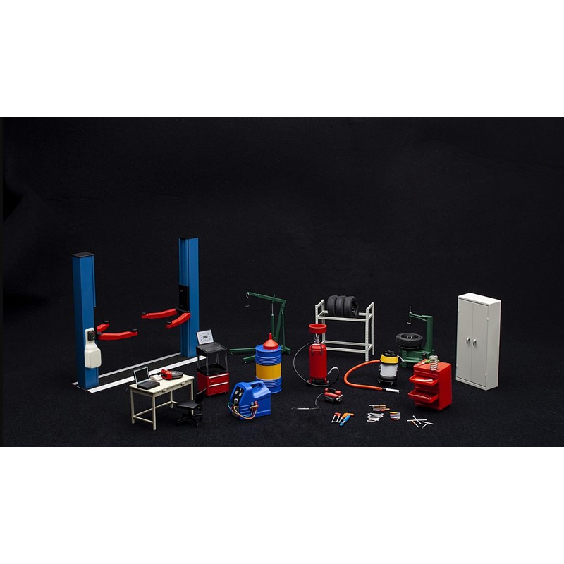 - Brand new box. Made of plastic. Includes all accessories shown. Fit all 1/18 scale buildings and dioramas. Does NOT include walls to create diorama. Manufacturer's original unopened packaging.
