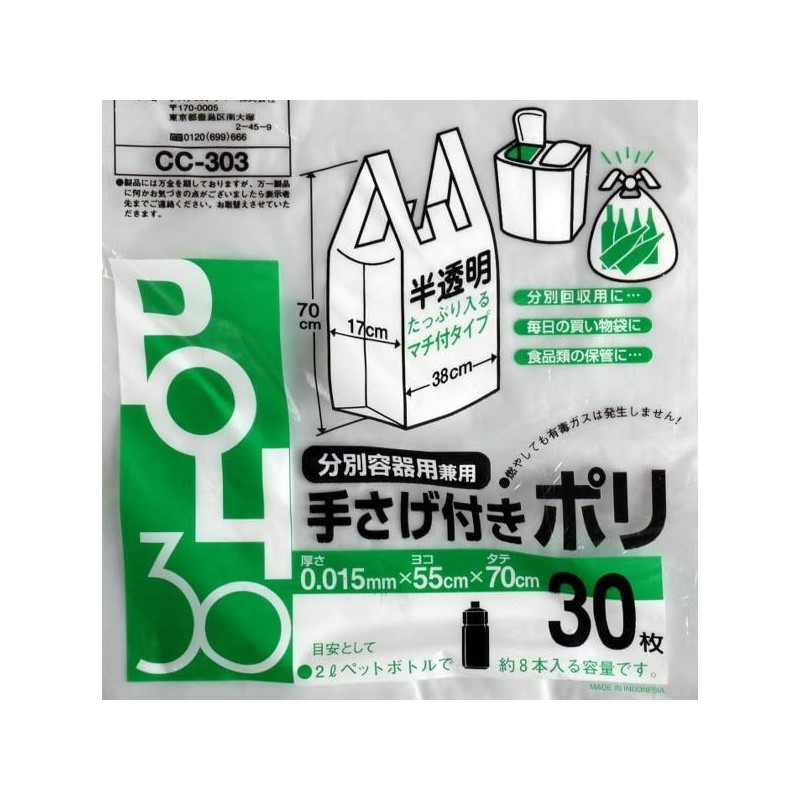 - Size: Outer Size: 21.7 x 27.6 inches (550 x 700 mm); Thickness: 0.0006 inches (0.015 mm); Cold-Resistant Temperature, Minus 30 °C); Material: Resin, Polyethylene; Product Name: 30 L; For Sorting Containers; Uses: Plastic Bag, Shopping Bag, Checkout Bag; Keyword/Fukuro; Make) Series Name: Poly with handkerchief: Manufacturer name: System Polymer Co., Ltd. Category: S270011; Quantity: 30 sheets
