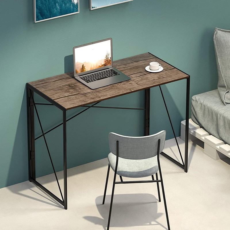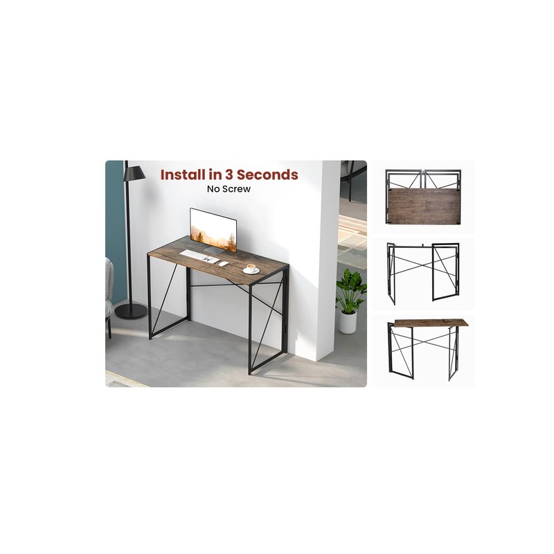 Garden Elements Modern Small Folding Computer Desk, Portable, Space-Saving Home Office Desk with Sturdy Metal Frame, Brown, 39"