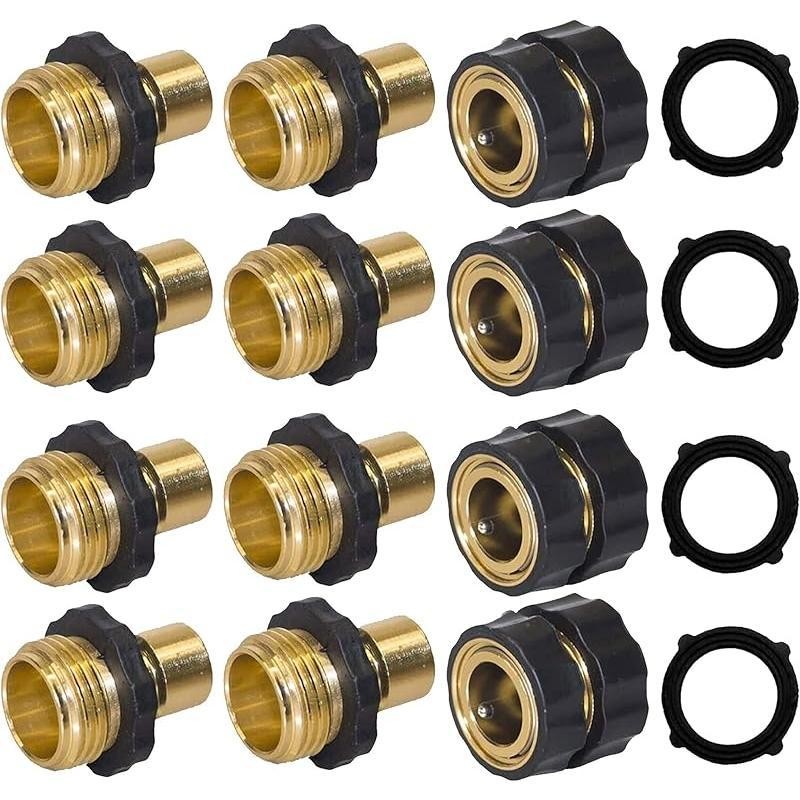 Garden Hose Quick Connect, 3/4 Inch Male and Female Garden Hose Fitting Quick Connector (8 Sets/4 Female & 8 Male) Outdoor - Size: 4 Female & 8 Male