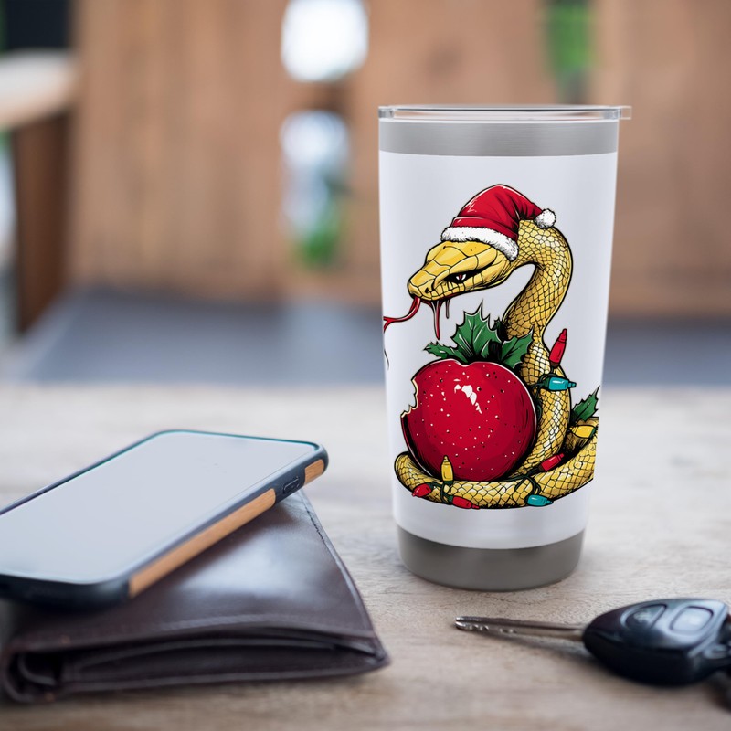 Garden of Eden Snake Eating Apple Adam and Eve Christmas Hat Stainless Steel Insulated Tumbler