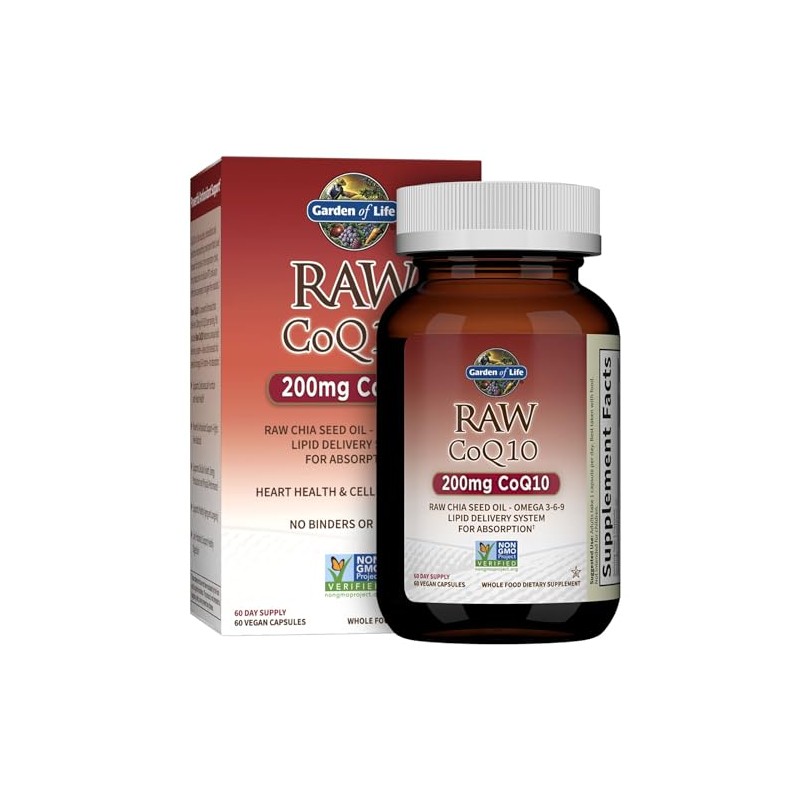 - Probióticos para favorecer una digestión saludable. Suplemento de CoQ10 crudo Raw CoQ10 aporta 200 mg de la forma alimenticia de CoQ10 en una base de aceite de semilla de chía crudo prensado en frío en una sola cápsula diaria. Este sistema único de administración de lípidos no contiene ingredientes artificiales y favorece la absorción de este importante antioxidante liposoluble. Garden of Life Raw CoQ10 es una fórmula potente que aporta 200 mg de CoQ10 vegano por porción. La CoQ10 liposoluble presenta un sistema de administración de lípidos único (una matriz de omega 3
