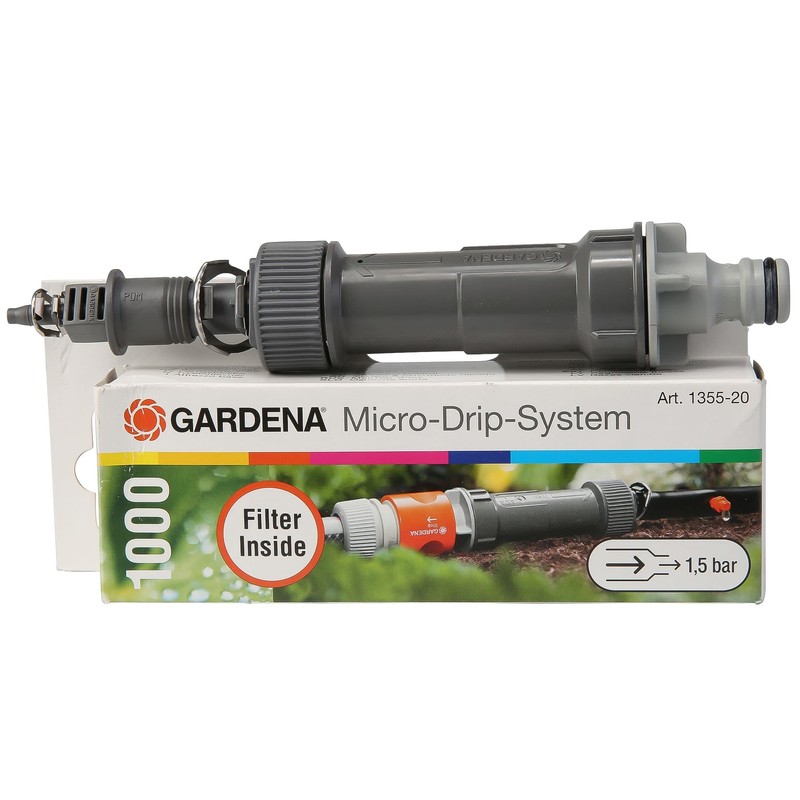Gardena 1355-20 Base Unit 1000 For Micro Drip System; Quick And Easy Connection Technology; Sieve Filter; Reduces Water Pressure To About 1.5 Bar (Water Output Up To 1000 Litres)