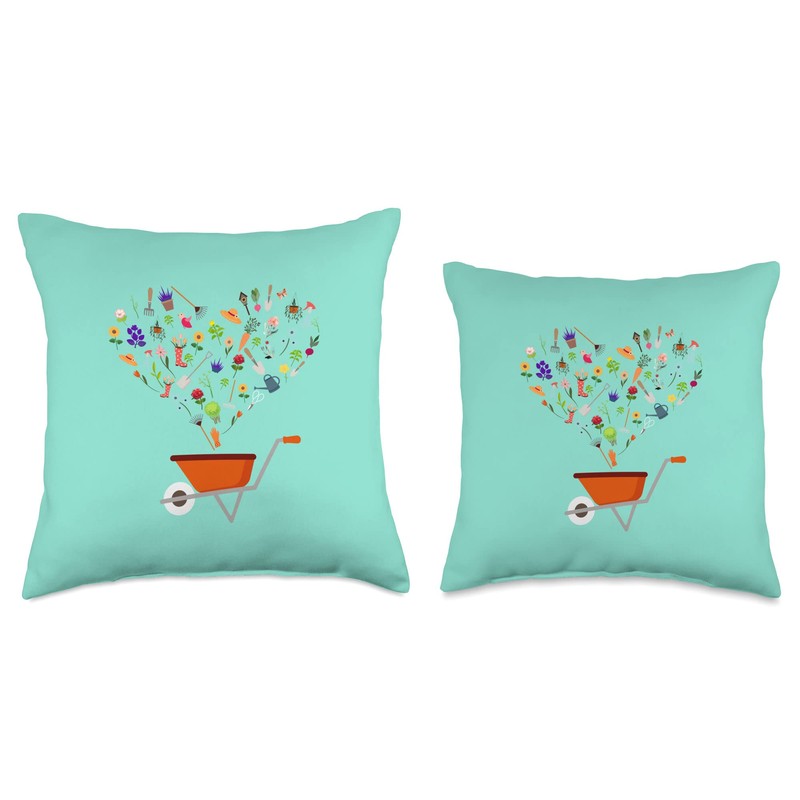Gardening wheelbarrow plant vegetable growing raised bed Throw Pillow