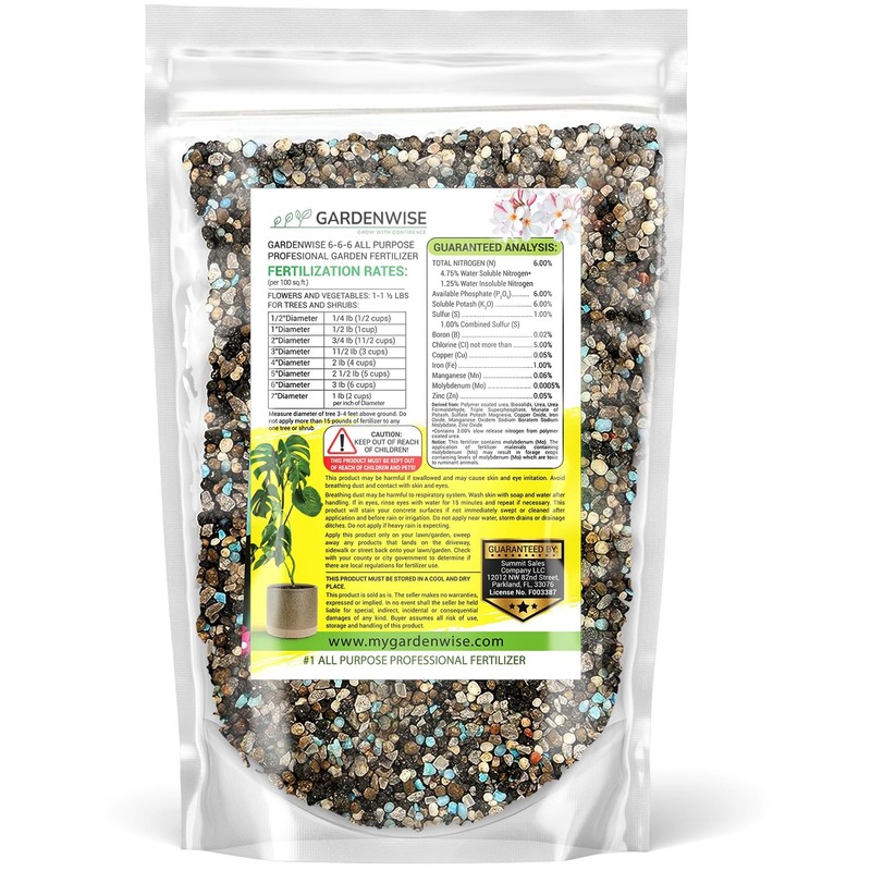 - 🌱 Ideal Nutrition for Abundant Plant Life: Balanced nutrition of 6% fast-release nitrogen, 6% phosphorus and 6% potassium, Gardenwise’s nourishing All-Purpose Professional Fertilizer is a versatile nitrogen-based fertilizer for most indoor and outdoor plants, like grass, flowers, vegetables, shrubs and evergreen trees. Help them flourish year round!