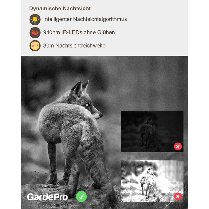 - Verpassen Sie nie einen Moment: Mit einer ultraschnellen Auslösezeit von 0,1 s ist die GardePro A5 immer bereit, die Action festzuhalten. Egal, ob Sie die Tierwelt überwachen oder sie als Sicherheitskamera verwenden, Sie können sich darauf verlassen, dass Sie keinen Moment verpassen.