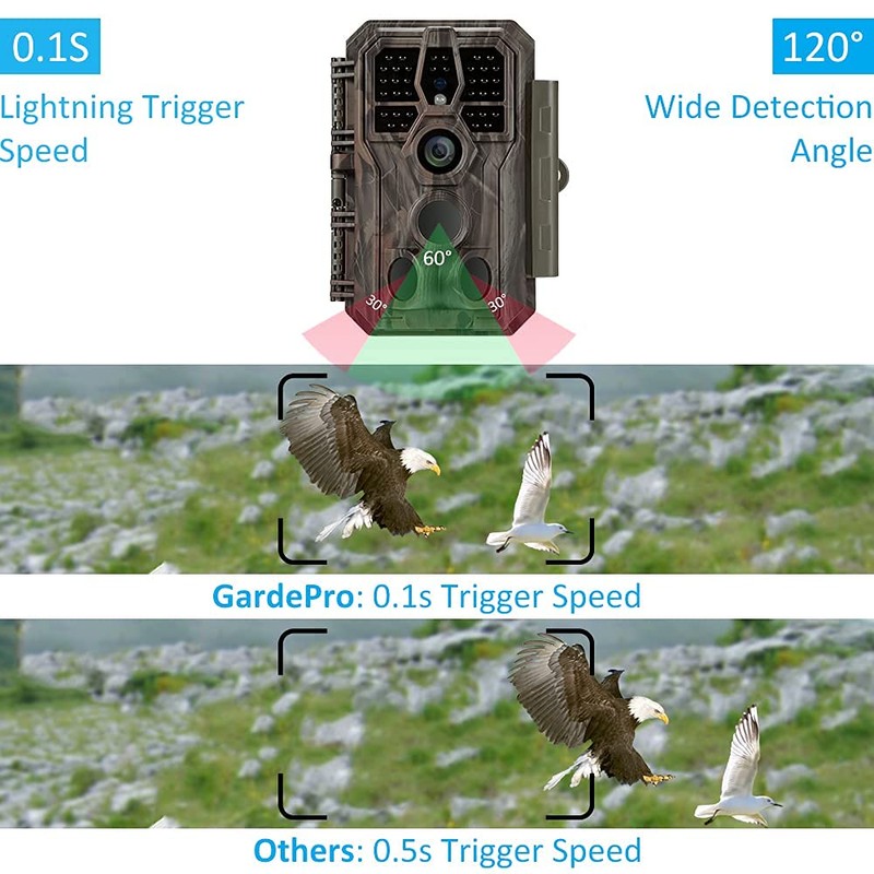 - Incredible Image Quality: The GardePro E5 is equipped with a cutting edge starlight optical lens and image sensor, comes with well-tuned image system to deliver more decent 24MP pictures. Outstanding 90ft night vision flash range.