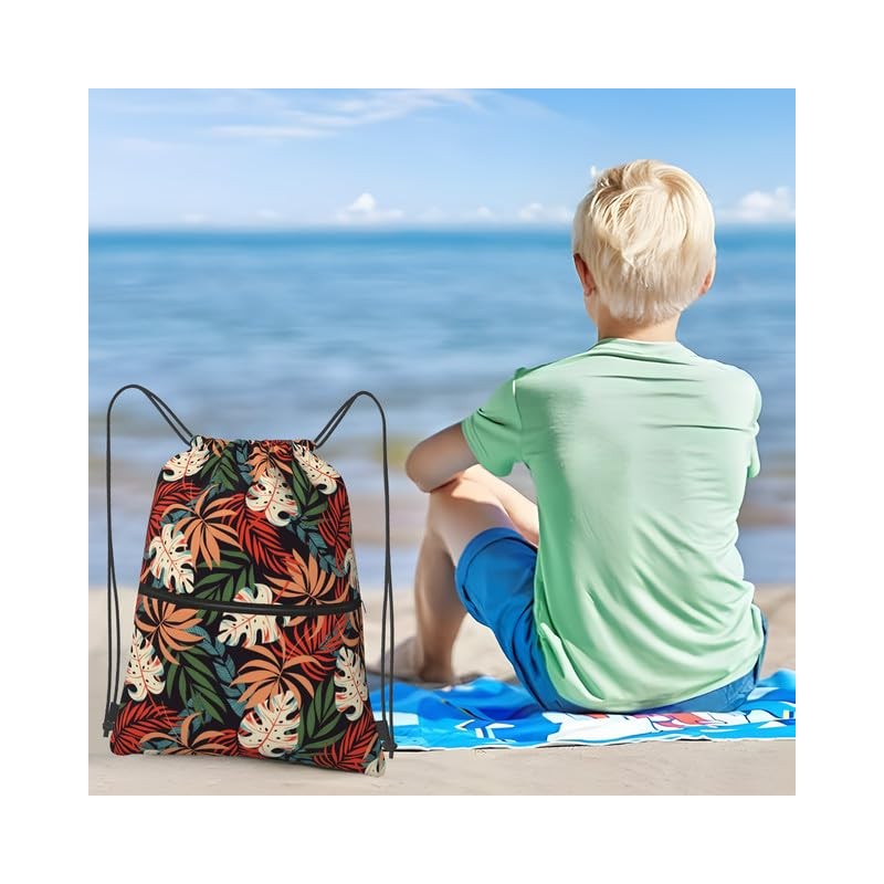 • Spacious and orderly storage space: Our coconut tree drawstring backpack measures 46x39 CM, and this drawstring design is very easy to open and close. The main compartment is equipped with a hidden pocket, which is perfect for storing essential items such as keys, cards, or small valuables. Front zipper pocket, spacious - perfect for quick access to your phone, wallet, water bottle, umbrella, or snacks, keeping your items organized and within reach