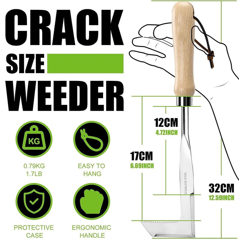 - Use scenarios: This manual weed knife is an excellent tool for removing moss and weeds between yard stones and road cracks. The sharp edge cutting part of the tool can penetrate exactly into the narrow area and perfectly remove small root herbs.