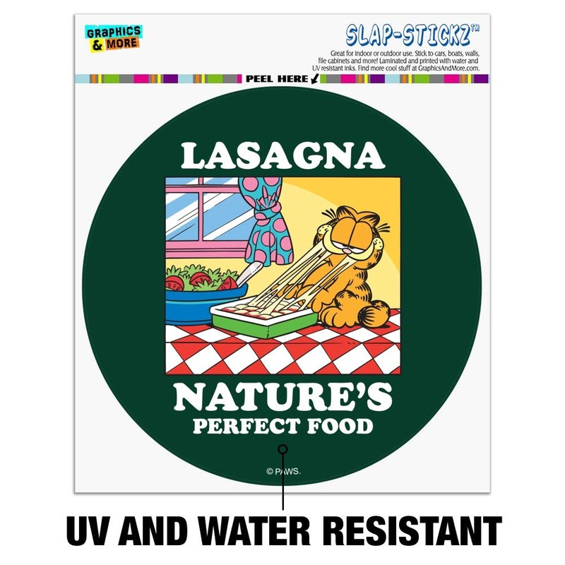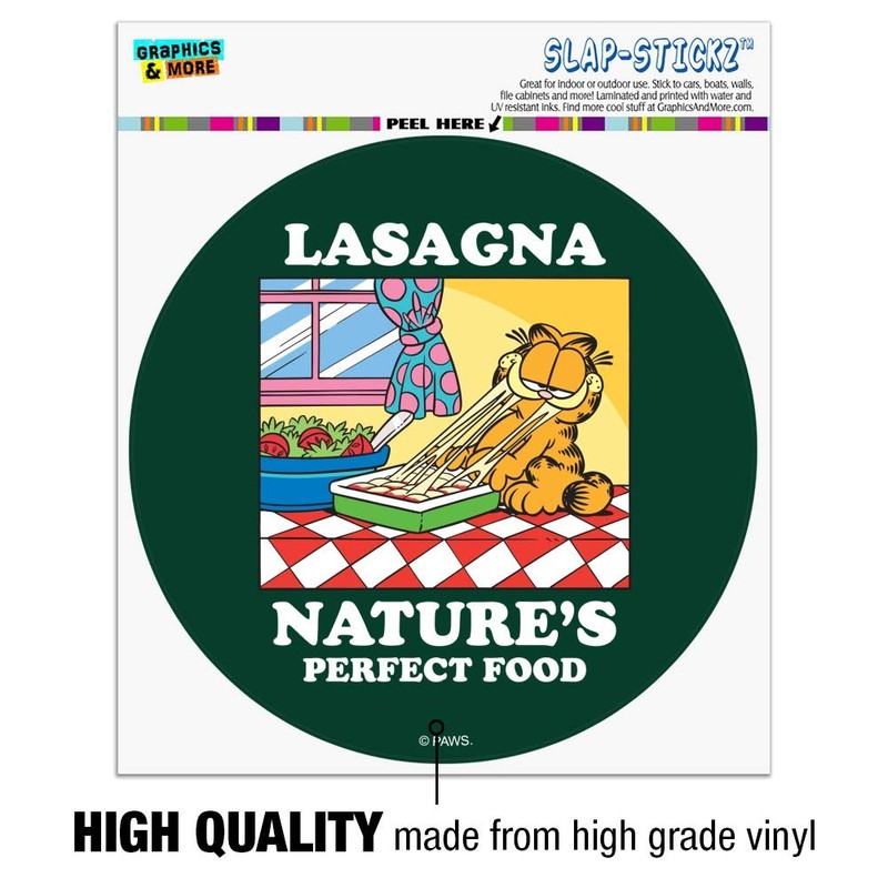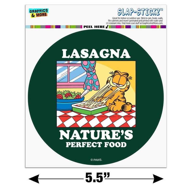 Garfield Lasagna The Perfect Food Automotive Car Window Locker Circle Bumper Sticker