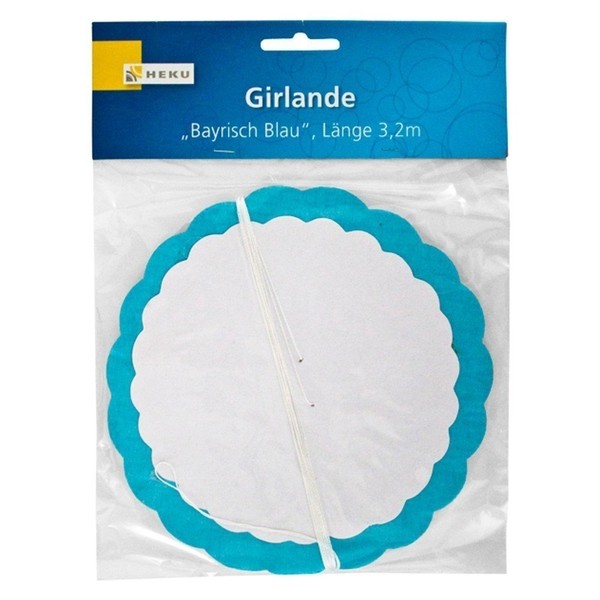 Eine Papiergirlande mit 3,2 m Länge im blau-weißem Design.