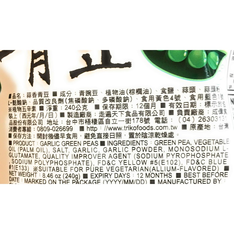 Garlic Green Peas 8.46 Oz(2 Pack)蒜香青豆