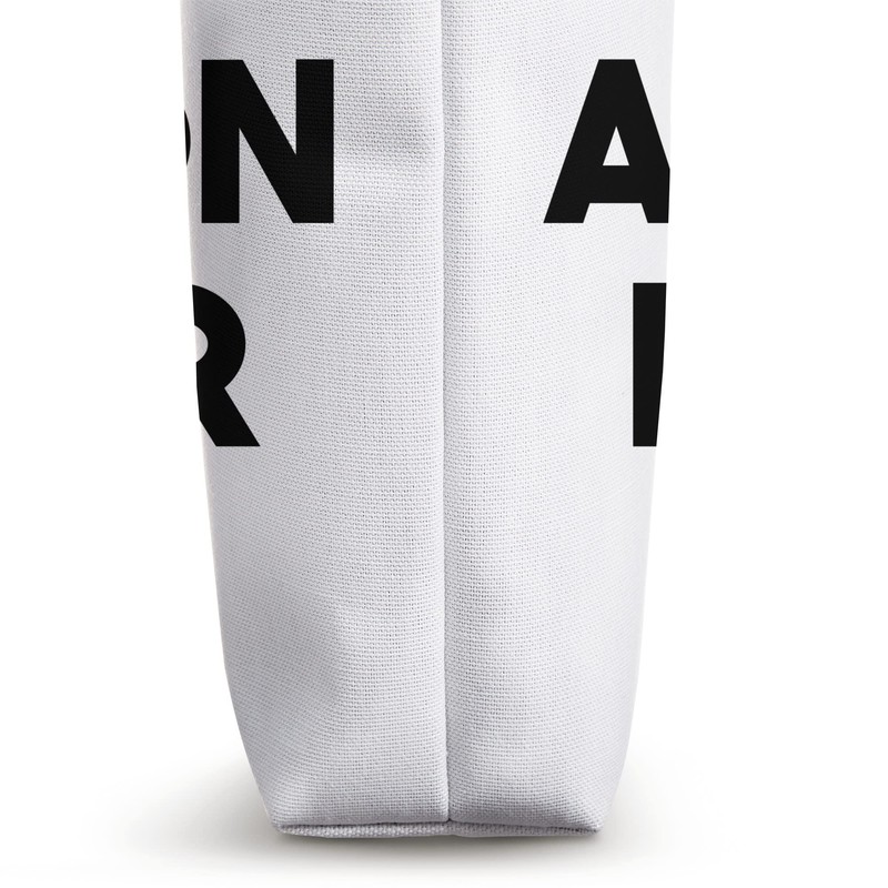 • 16” x 16” bag with two 14” long and 1” wide black cotton webbing strap handles.