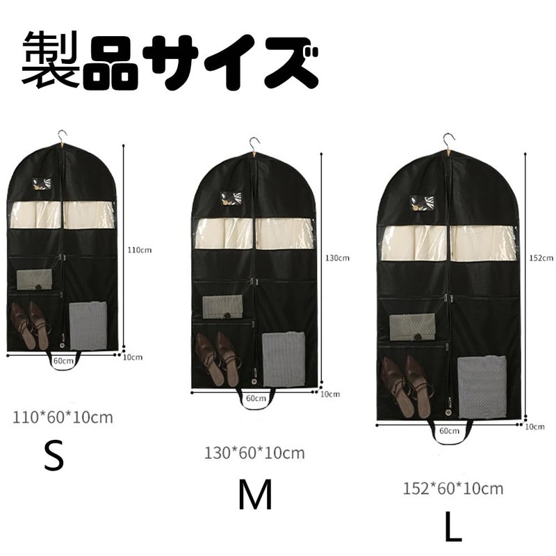 - Product Specifications: Size: S: 43.3 x 23.6 x 3.9 inches (110 x 60 x 10 cm); M: 51.2 x 23.6 x 3.9 inches (130 x 60 x 10 cm); L: 59.2 x 23.8 inches (152 x 60 x 10 cm); Visible 3D costume bag can prevent dust, moisture and insects, normal cleaning and maintenance can be used to wipe with a wet towel or directly clean and can be reused