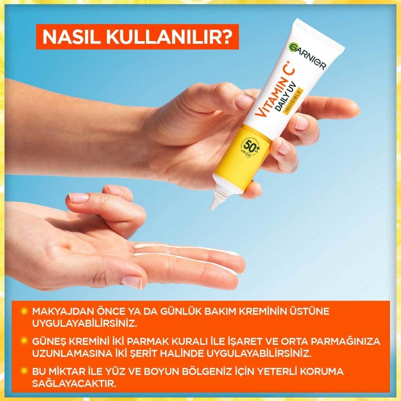 Garnier C Vitamini Parlak Günlük Güneş Koruyucu Fluid Yüz Kremi Görünmez Doku SPF50+ 40ml