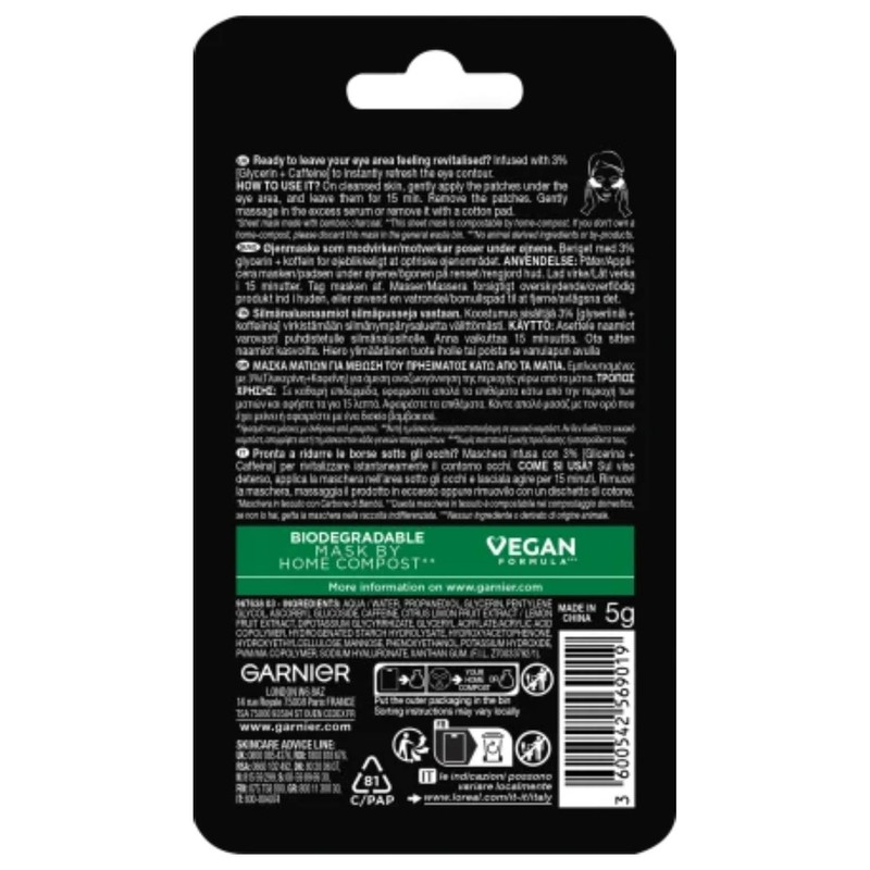 Garnier Caffiene & Charcoal Eye Mask