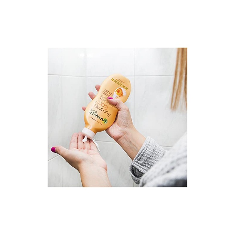 Product DescriptionDreaming of having soft, radiant, sun-kissed looking skin all-year-round? Garnier takes care of you with Summer Body Light Gradual Tan Moisturiser. It intensely moisturises and gradually builds a natural looking bronzed glow in harmony with your skin tone. Suitable for face and body, this moisturising FORMULA is enriched with Apricot Oil to intensively hydrate skin all day long, leaving it feeling soft and supple. Specially developed for lighter skin tones, this FORMULA contains a hint of tanning active to gradually build a natural-looking even tan. Fast-absorbing with easy, uniform application, this hydrating Vegan* gradual self tan is like summer in a bottle! Dermatologically tested and suitable for sensitive skin *Vegan FORMULA: no animal ingredients or by-products. All Garnier products globally are officially approved by Cruelty Free International under the Leaping Bunny programme, the leading organisation working to end animal testing, and the recognised Cruelty Free Gold Standard.IngredientsAqua / Water, Cyclopentasiloxane, C12-15 Alkyl Benzoate, Glycerin, Stearyl Alcohol, Alcohol Denat., Sorbitol, Glyceryl Stearate, Ceteareth-15, Dihydroxyacetone, PEG-100 Stearate, Dimethicone, Tocopheryl Acetate, Sodium Polyacryloyldimethyl Taurate, Phenoxyethanol, Ethylparaben, Polysorbate 80, Dimethiconol, Limonene, Linalool, Sorbitan Oleate, Geraniol, Methylparaben, Citronellol, Citral, Prunus Armeniaca Kernel Oil / Apricot Kernel Oil, Parfum / Fragrance Please see back of pack for the latest ingredients listDirectionsApply lotion evenly all over the body for a uniform golden tan. Wash hands well after each application. May stain clothes. Avoid contact with fabric.Box Contains2 x Garnier Light Sun-Kissed Look Body Lotion 250 ml