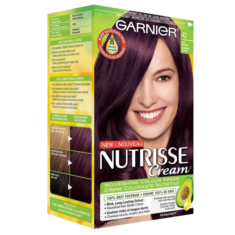 Garnier Nutrisse Cream, Permanent Hair Colour, 42 Deep Burgundy, 100% Grey Coverage, Nourished Hair Enriched With Avocado Oil, 1 Application