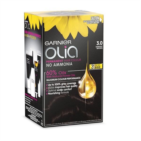 Garnier Olia Permanent Hair Colour, 3.0 Darkest Brown