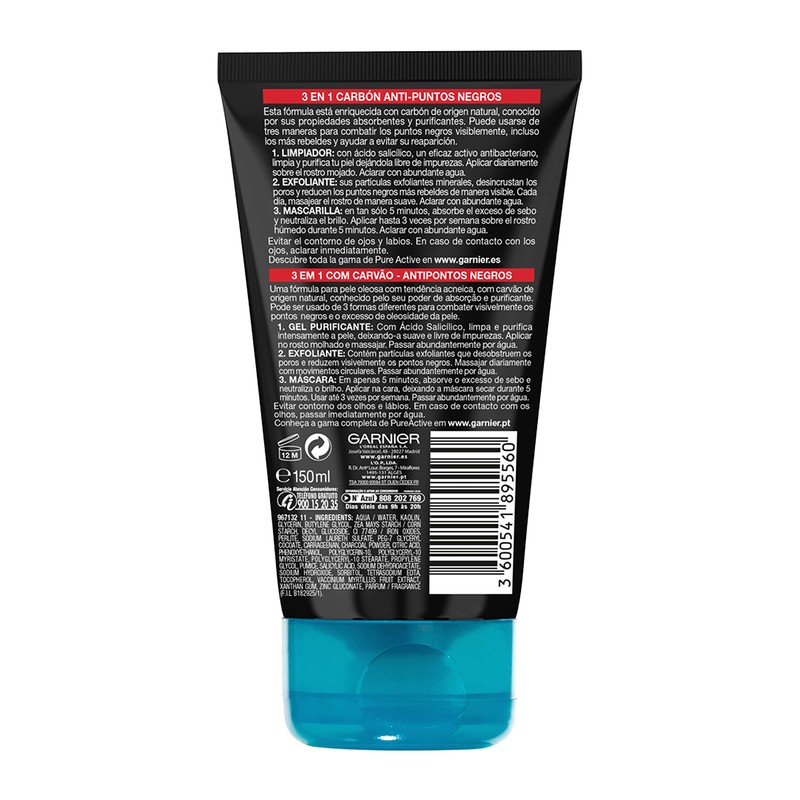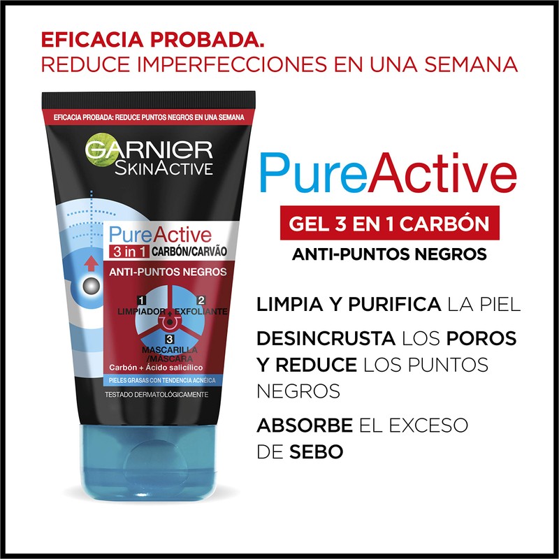 - 3-in-1 pore cleansing gel with activated carbon, removes blemishes, reduces blackheads and mattifies the face