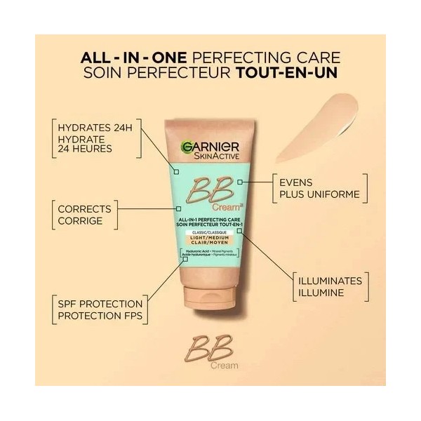 Garnier SkinActive BB Cream Hyaluronic Acid + Aloe Vera, Light to Medium