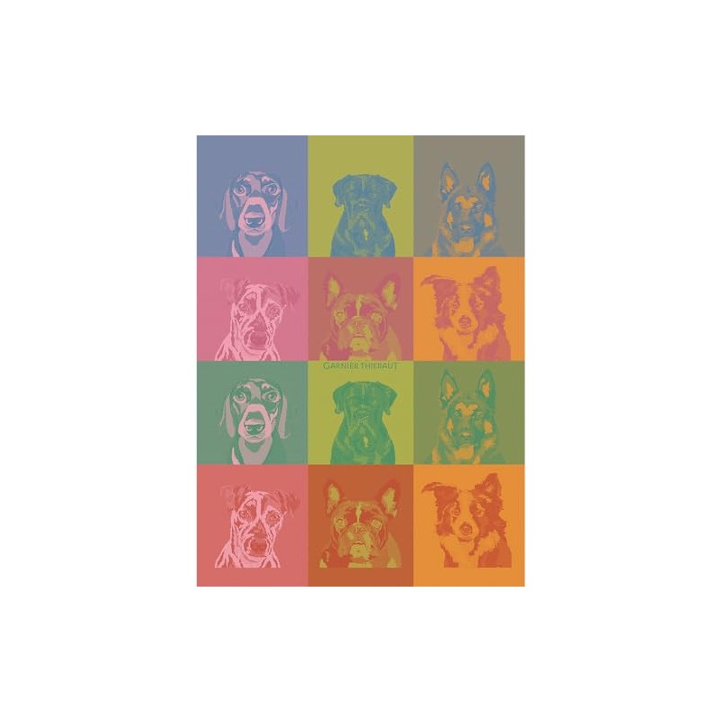 Garnier Thiebaut Chiens Pop (Dog Pop Art) French Kitchen Towel 22"x30", Cotton, Jacquard