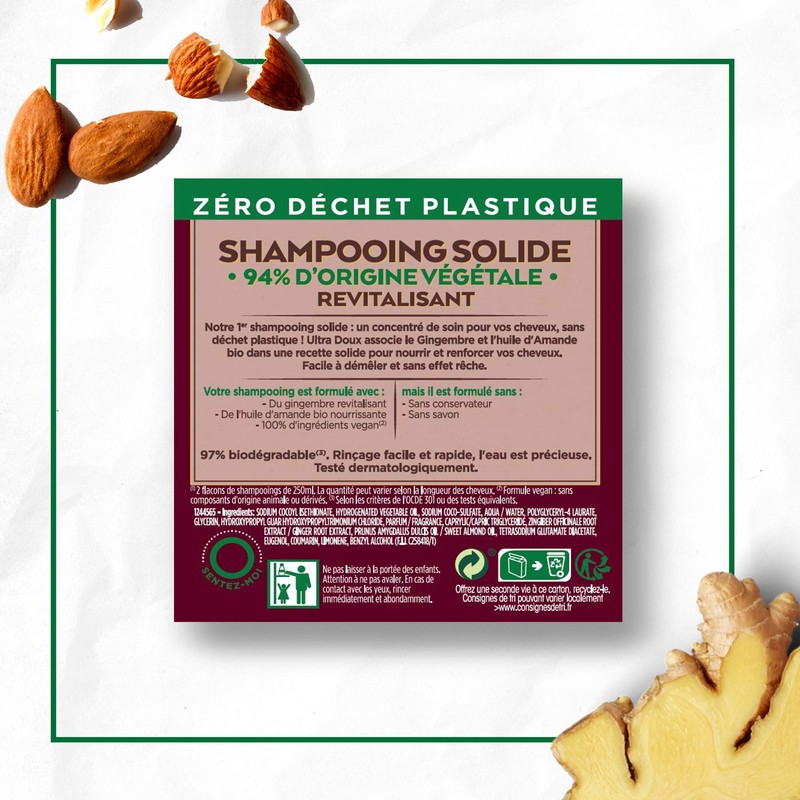 Garnier Ultra Doux Solid Shampooing Ginger For Dull Hair - 60 g (Textured Fringe)