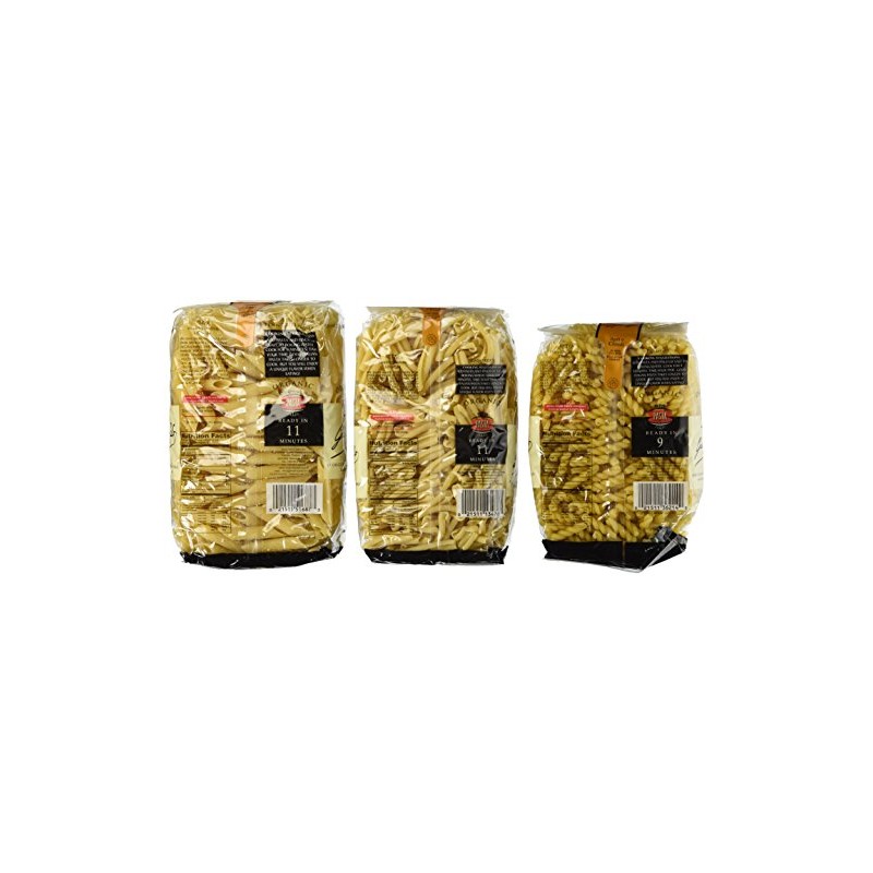 The pasta is made of 100% organic durum wheat semolina flour. It’s available in a 6-pack with 1.1 lbs each.