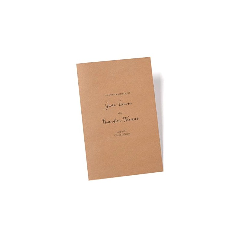 • Give your big day the laid-back elegance it deserves with the understated rustic appeal of our kraft print at home programs with white inserts