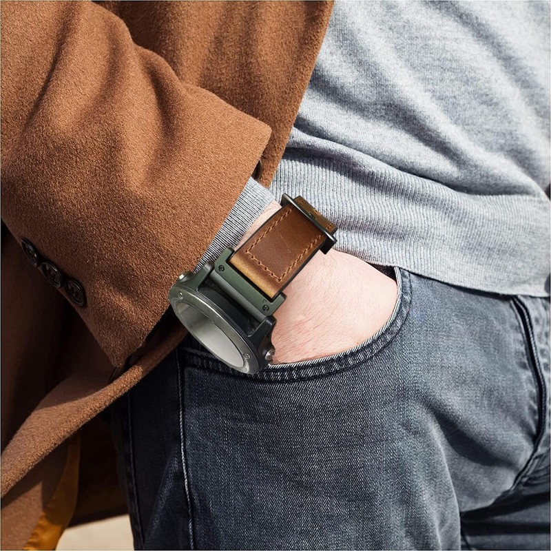 - ✅Stainless Steel Buckle and Connect Adapter: brushed buckle complement the premium leather aesthetic, lock onto your watch precisely and easy to adjust band lenght, fit wrist size 5.9''-8.26'' (150mm-210mm).