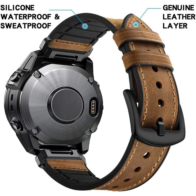 GARTOO Leather Band for Fenix 6/ Fenix 5/Fenix 7/Epix 2 Watch Bands, QuickFit 22mm Soft Genuine Leather with Silicone Sweatproof Wrist Strap for Garmin Fenix 6 Pro/Sapphire,EPIX 2