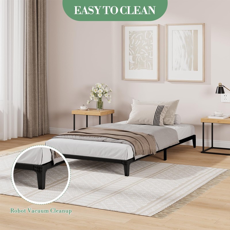 Garvee Metal Bed Frame, Twin Size Heavy Duty Metal Platform Bed Frame, Noise-Free Mattress Foundation with Strong Steel Slats, No Box Spring Needed, Easy Assembly, 14 Inch Under Bed Storage, Black